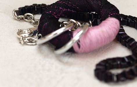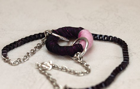 Simple et efficace ! c’est ce que je dis toujours, il n’est pas nécessaire d’en faire trop. Une petite chaine argenté, une bande de couleur ainsi qu’un peu de fil et l’effet est assuré.