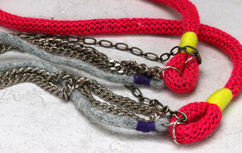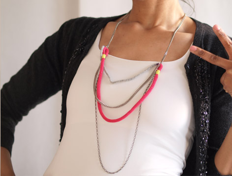Ce sautoir peut très bien se porter avec un jeans, car il a un côté loose, mais très féminin pour autant, grâce à la touche de rose.