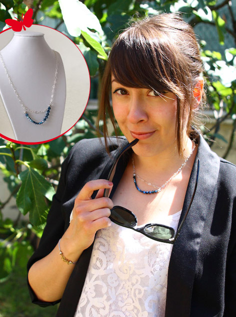 Je met rarement des colliers, sauf quand j’y pense mais celui-ci s’accorde avec pas mal de mes tenues.