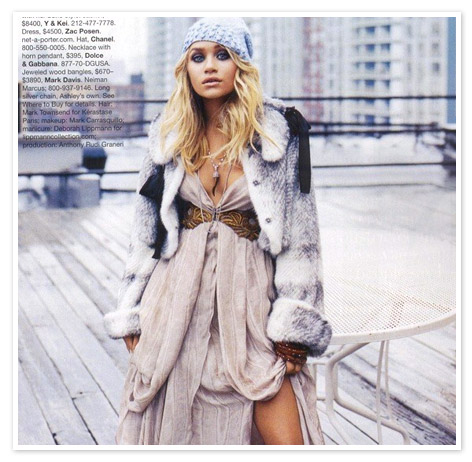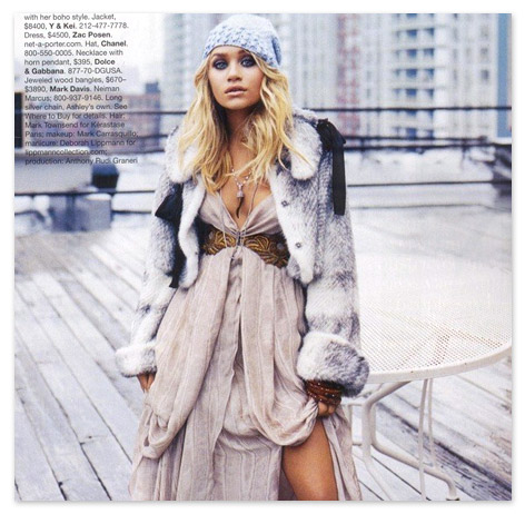 Et ouiiii c’est Ashley posant pour le magazine Bazaar, en temps normal je préfères le make up et dressing de Mary-kate, mais là c’est Ashley qui remporte mon kiffe ^_^