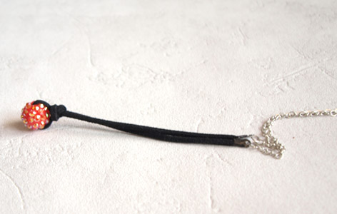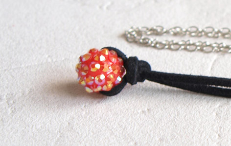 En mode strass, l’élément idéal pour sublimer n’importe quelle tenue. Lancez vous et vous serez plus que tendance. Pour ce sautoir j’ai donc utilisé de la chaine argenté, du fil de soie noir. Le pendentif quant à lui est une petite bille orange entouré de strass demi-toupie swaroski.