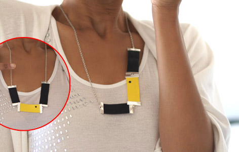 Quoi de mieux que du noir et du swaroski (la petite strass) pour sublimer une tenue des plus classique ^_^. Je ne voulais pas d’un look total black, j’ai donc choisi de le casser avec du jaune, une couleur bien pétante.