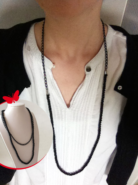En parcourant le net, une jeune fille répondant au nom de Marie est tombée sur mon blogounet et surtout sur le sautoir « Total Black » qu’elle a tout de suite adoré.