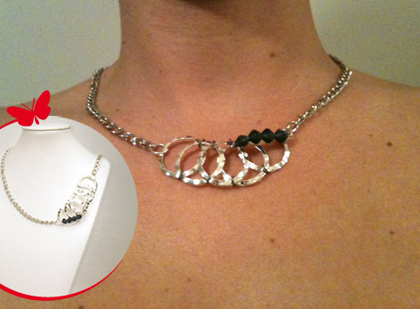 Mdr, quelle bonne surprise. En ouvrant ma boite mail, je découvre les photos de Stéph posant avec son collier « Multiples cercles » ^_^ ( ben oui, je les attendaient avec impatience ; p )